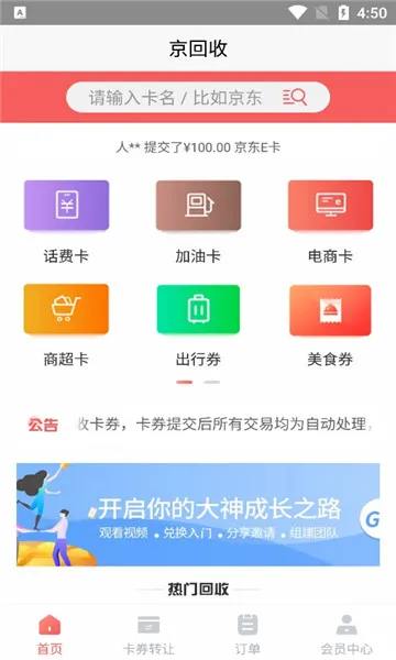 平台一大亮点是自动结算且即时到账,最快1分钟内结算到账,还支持微信、支付宝、银行卡等多种提现方式。同时,拥有专业客服,3秒内提供一对一服务,保障订单信息安全。此外,可清晰记录历史卖卡情况,方便用户管理交易。无论是想转让闲置卡券变现,还是安全快捷回收卡券,京回收都能满足需求 。
