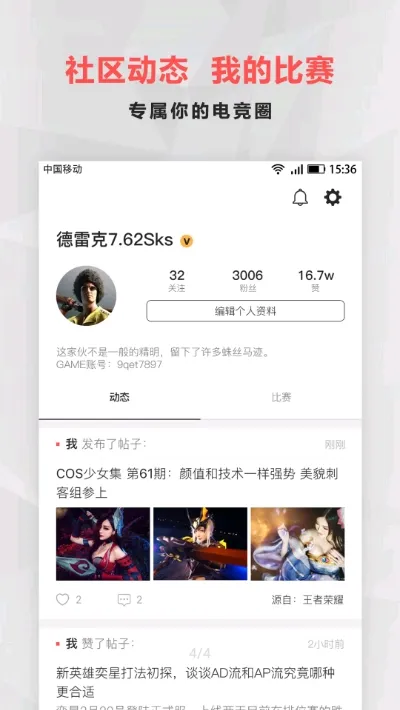 电竞圈安卓版是游戏迷不容错过的软件。它是专注游戏攻略分享的娱乐平台,为广大电竞玩家提供全面游戏攻略,从基本操作到高级策略玩法都有涉及。还结合在线游戏社区,玩家能交流心得、相互鼓励,提升游戏水平,免费阅读实时热点游戏新闻。这里汇聚全球热门电竞游戏,关注行业热点,传递最新资讯。有强大社区系统,可与其他玩家交流。它能直播全球顶级赛事,提供一键订阅提醒;聚合电竞明星及大神第一视角直播;同步更新点播视频;还有离线下载、任务中心、欢乐商城等功能,助你畅享电竞乐趣。