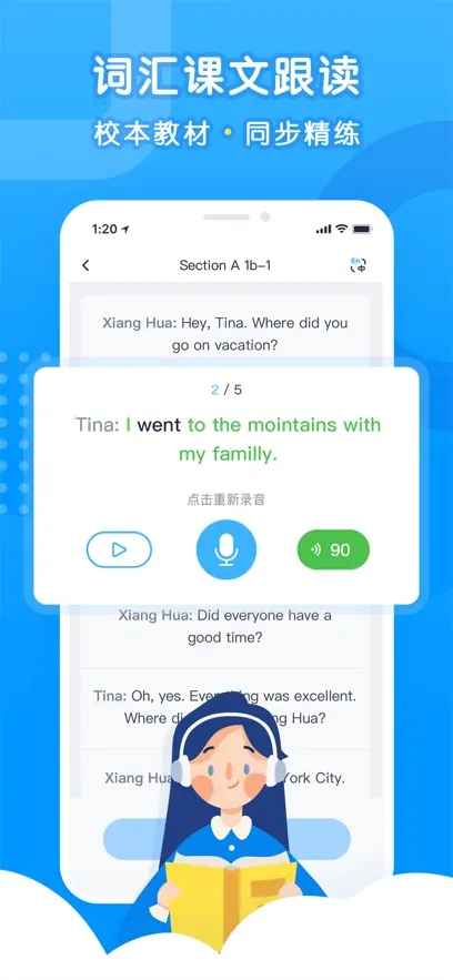 2、精准评测指导:采用音素级AI语音智能评测技术,分析海量中国学生学习数据,提供精准发音诊断与指导。
