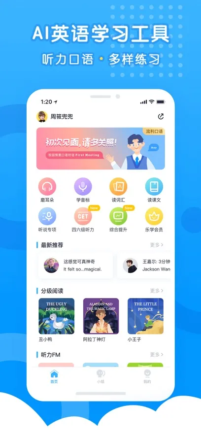 它采用音素级AI语音智能评测技术,通过分析海量中国学生学习数据,提供精准的发音诊断与指导。软件内容与教材配套,实现同步学习,题型多样,可专项或系统训练。学生还能加入小组练习,提升学习动力。在这里,不仅能进行中高考听力口语专项训练,补足弱项,还有多种趣味学习方式,如影视动画配音,让英语学习不再枯燥,全面提升学生英语应用能力 。