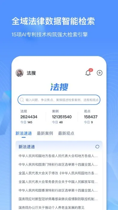 2、检索智能强大:拥有15项AI专利技术的智能检索引擎,支持多种检索方式,能快速精准获取法律信息,还可一键生成类案检索报告。