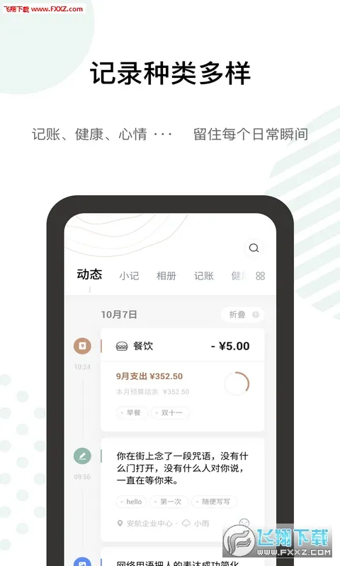 1、记录模板丰富:聚合众多记录功能,长文、短文、照片等模板多样,满足不同记录需求。