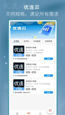 优连云电脑是一款集云计算技术于一体的云端管理工具,旨在为用户提供高效便捷的云电脑服务。用户无需升级硬件,即可通过手机等设备畅玩PC游戏、高效办公,享受24小时在线的云端体验。