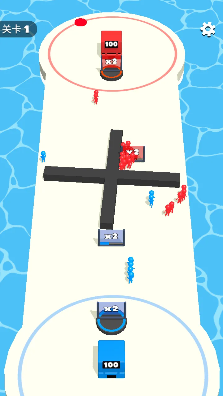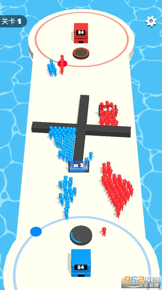 这是一款创新玩法的策略闯关游戏,目标明确——占领敌人基地 。玩家操控炮台发射小兵,小兵经过倍数门数量会增长。战斗时,玩家得抵挡敌人进攻,派出敢死队消耗红色大门,攻占敌人塔楼,谨慎选择派兵路径,策划进攻方案,分配好蓝色和红色大门的兵力。
