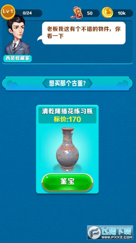 这是一款以古董为题材的经营游戏。在这里,你能体验刺激的鉴宝环节,通过寻找古董瑕疵与老板砍价,以优惠价格拿下值钱古董。游戏玩法多样,可批发买断、摊位鉴宝收集套装展览,享受收集快感同时收获丰厚收入;还能低买高卖古董,提升店铺声望。操作简单,滑动点击即可,与老板对话玩梗不断。其风格简洁清新,画面带来身临其境之感,且自由度高,离线挂机也自在。无论是想体验捡漏乐趣,还是经营店铺,都能在游戏中实现,带你开启独特的古董经营之旅 。