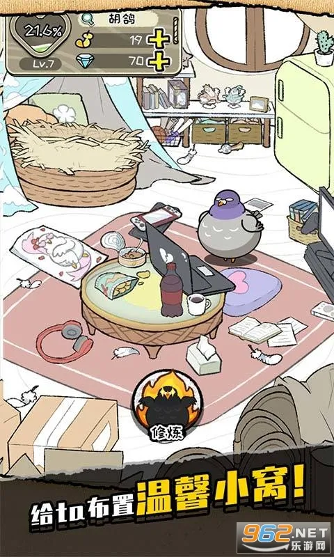 2、玩法丰富:能经营鸽子工厂、解锁鸽房,有收集咕咕图鉴、鸽巢扭蛋等玩法,还可帮小人找鸽人理由。