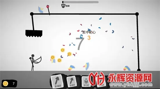 这是一款以火柴人形象为主的休闲解压横版动作射击闯关小游戏。其设定独特有趣,简约的黑白游戏背景搭配丰富关卡挑战,以及多种组合无限制的射击对决玩法。操作极为简单,无论男女老少,拖动屏幕控制火柴人瞄准射中靶子即可。每射中一次会有积分和金币奖励,可用来购买升级保险绳或装备皮肤。游戏中玩法模式多样,关卡挑战难度会逐渐提升,玩家需掌握更多射箭技巧。里面不仅有普通靶子,还有移动靶和穿透靶。场景丰富多样,能让人尽情展现实力,畅享欢乐,适合闲暇时放松游玩 。
