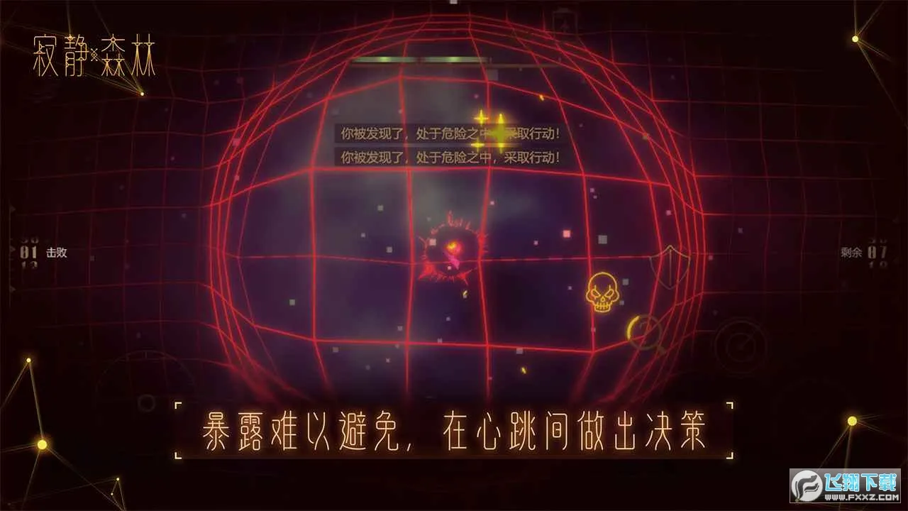 这是一款以宇宙生存为题材的策略 io 手游。游戏以黑暗森林法则为基础,用简单图形构筑出寂静森林般的宇宙。在这里,所有玩家互相不可见,一旦暴露就会遭猎杀。玩家要在危机四伏中谨慎求生,是选择做步步为营的盾士,还是布设陷阱的猎手,全由自己决定。每一个举动都会增加暴露值,需运用搜集的技能制定策略。无论是爽快射击,还是紧张策略,都能让玩家体验到潜行生存的另类对战,在看不见的对手间较量权衡,用尽手段活到最后 。