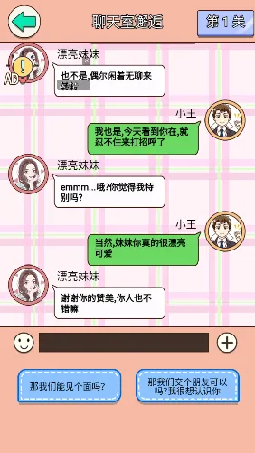 《舔狗逆袭大作战》是恋爱游戏,模拟网上交友。玩家扮演舔狗追女神,需应对挑战选对话行动。游戏对话幽默、场景暖心,还有揭秘、恋爱日记等丰富内容及进阶宝典,带来别样恋爱冒险。