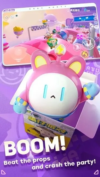 《EggyParty(蛋仔派对竞技)》是网易推出的潮玩题材多人动作闯关手游。玩法自由,有海量任务挑战,操作简单。能与全球玩家竞技,有丰富道具、多样场景,可自定义关卡,还强化社交互动,带来趣味冒险体验 。