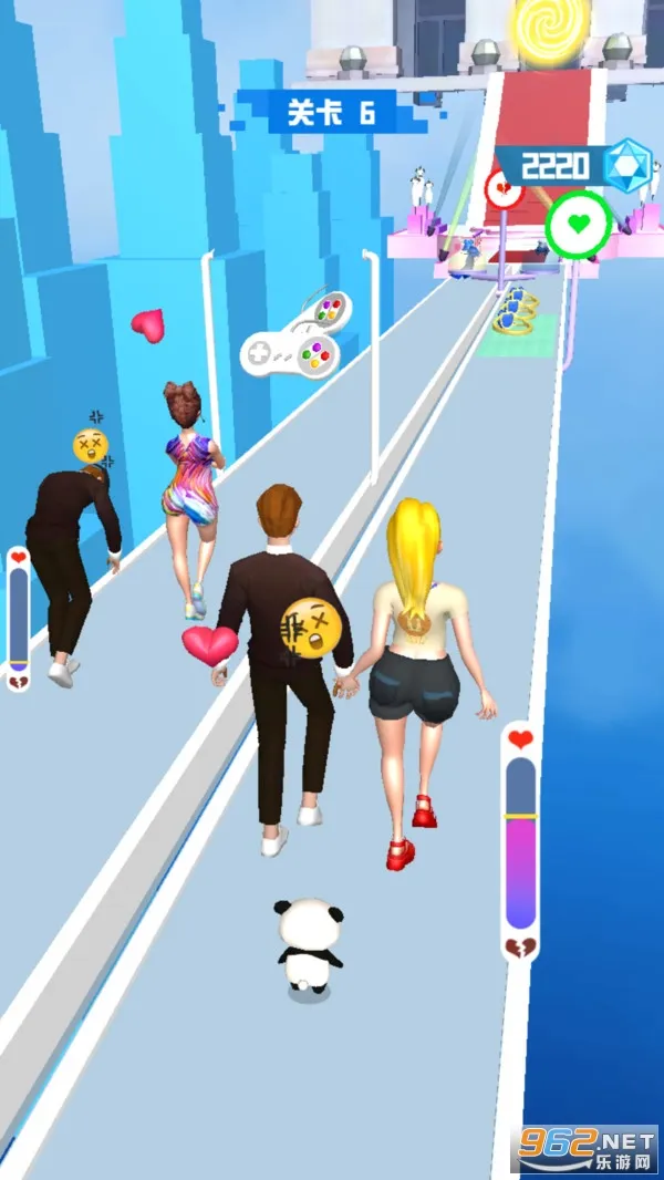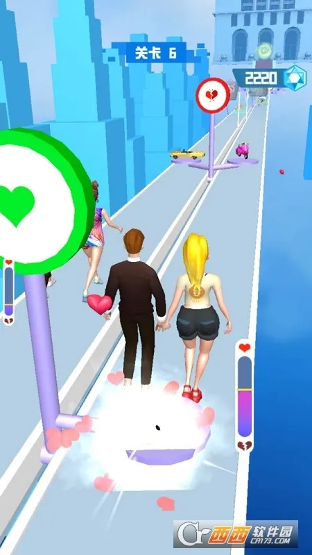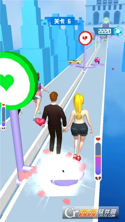 这是一款以情侣为单位开启跑酷挑战的休闲手游。在游戏里,玩家要操控情侣在满是障碍的赛道冷静奔跑,面对各种事件考验反应力,通过使用道具解决难题,助力情侣迈进婚姻殿堂。游戏采用 3D 画面,操作流畅,色彩鲜艳,有着欢乐的游戏风格。众多关卡等待挑战,难度随挑战次数增加。能尝试新卡通主题,角色和服装选择丰富。玩法上,收集金币可解锁精彩内容,拾取游戏机有特殊效果,还能用爱心改变道具属性。喜欢休闲跑酷游戏的玩家不妨一试。